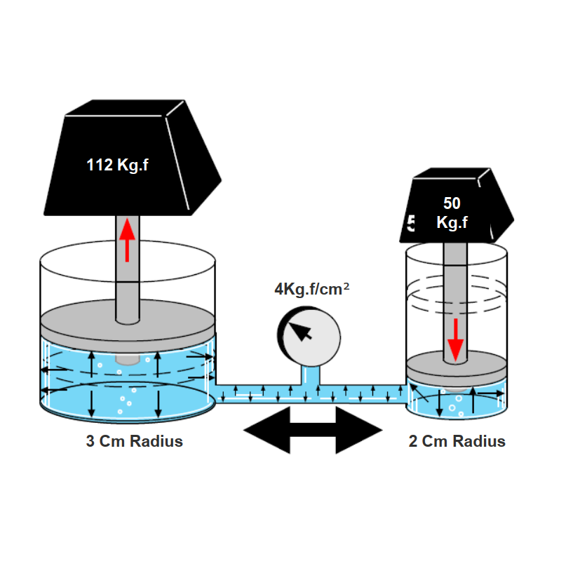 Áp lực tác động lên một điểm bất kỳ của chất lỏng trong một hệ thống kín sẽ được truyền đi không suy giảm trong mọi hướng và tác động đồng đều lên tất cả các diện tích. Điều này tạo ra lực tác động lớn hơn trên các bề mặt có diện tích lớn hơn trong hệ thống thủy lực.