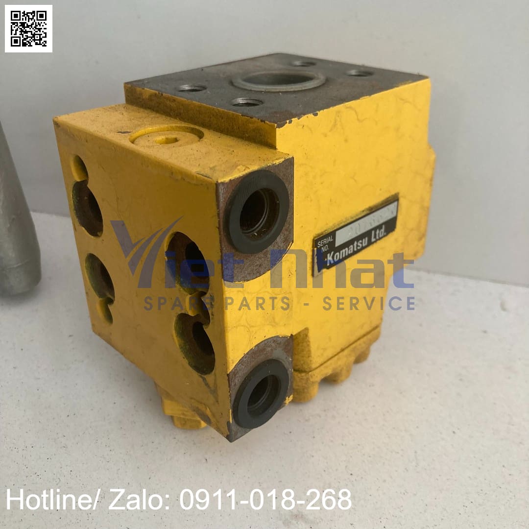 Van chiết áp khiển Komatsu có nhiệm vụ hạ dòng dầu có áp suất cao từ bơm thủy lực tới xuống 35-38kg/cm2 để làm áp điều khiển. (Không sử dụng bơm điều khiển)