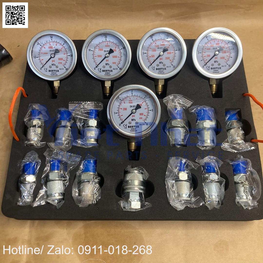 Bao gồm: 5 đồng hồ, 27 cút nối, cút đo, 5 dây đo dài 1.5m. Đây là bộ đo đủ đồ nhất trên thị trường, bộ đo có những cút chạc 3 hiếm. Đủ đồ để đi làm kể cả đo áp khiển đầu cốc ngăn kéo,đo áp mở phanh chân di chuyển