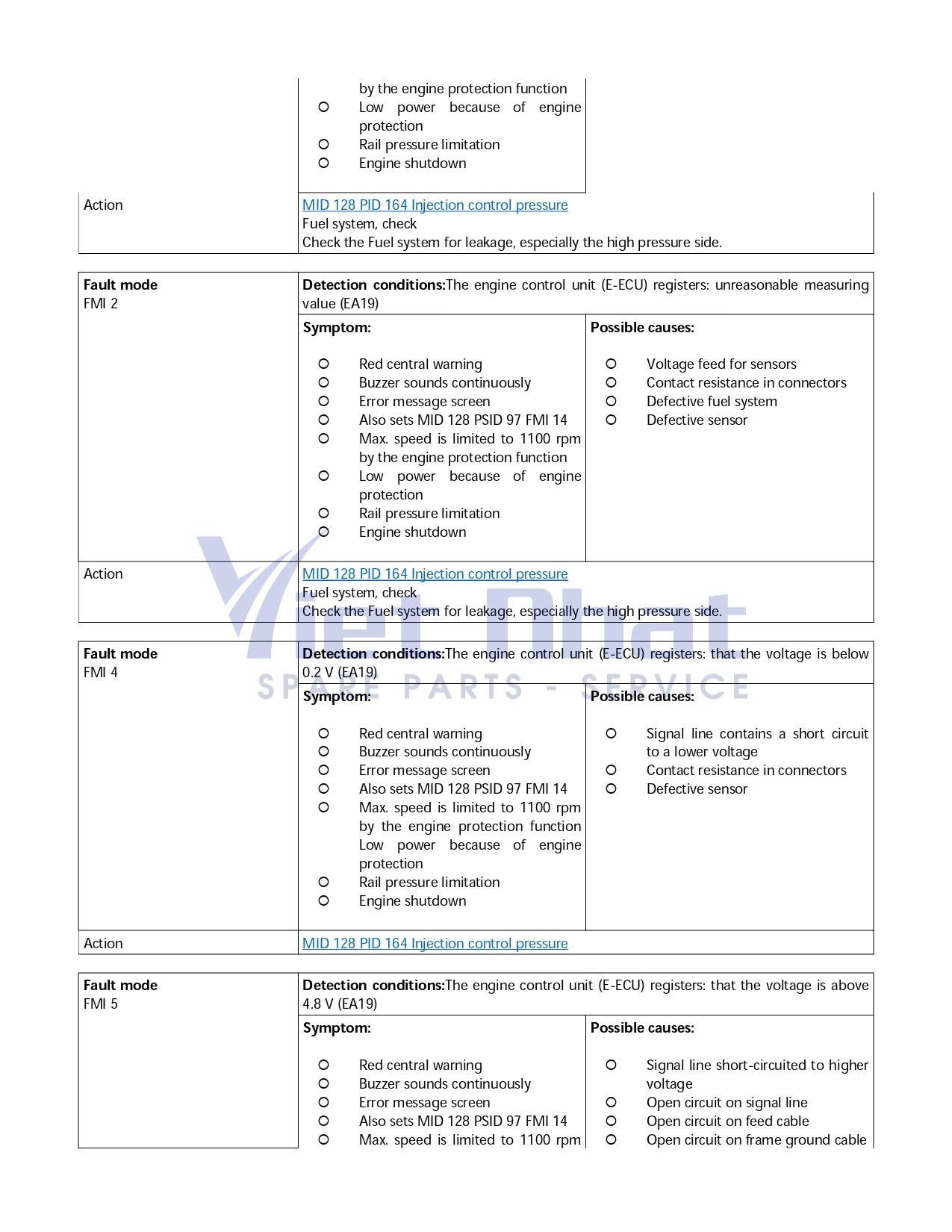 | FMI | Điều kiện ECU ghi nhận lỗi | Nguyên nhân có thể |